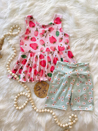 Strawberry Peplum w/ Lettuce Hem & Bikers
