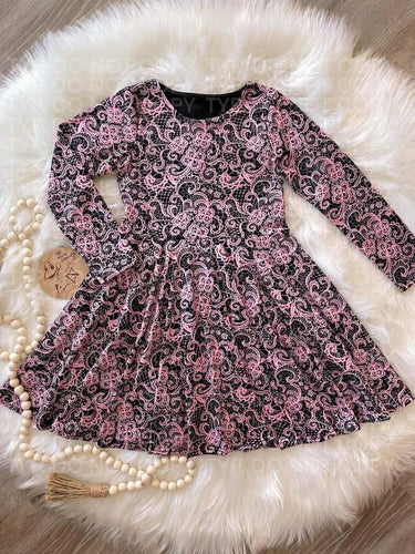 Faux Pink Lace Twirl Dress