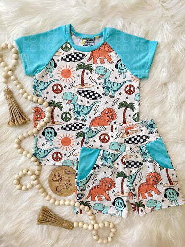 Dino and Checks Raglan/Shorts Set