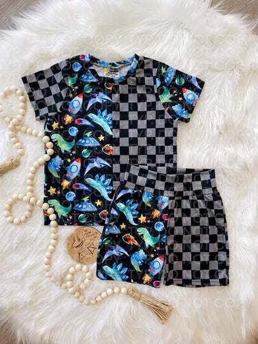 • Space Dino Colorblock Tee/Shorts Set