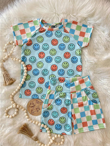 • Smiles and Checks Raglan/Shorts Set