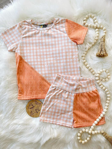 • Orange Checks Colorblock Tee/Shorts Set