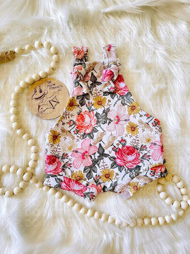 • Vintage Floral Knotted Overall Shorts