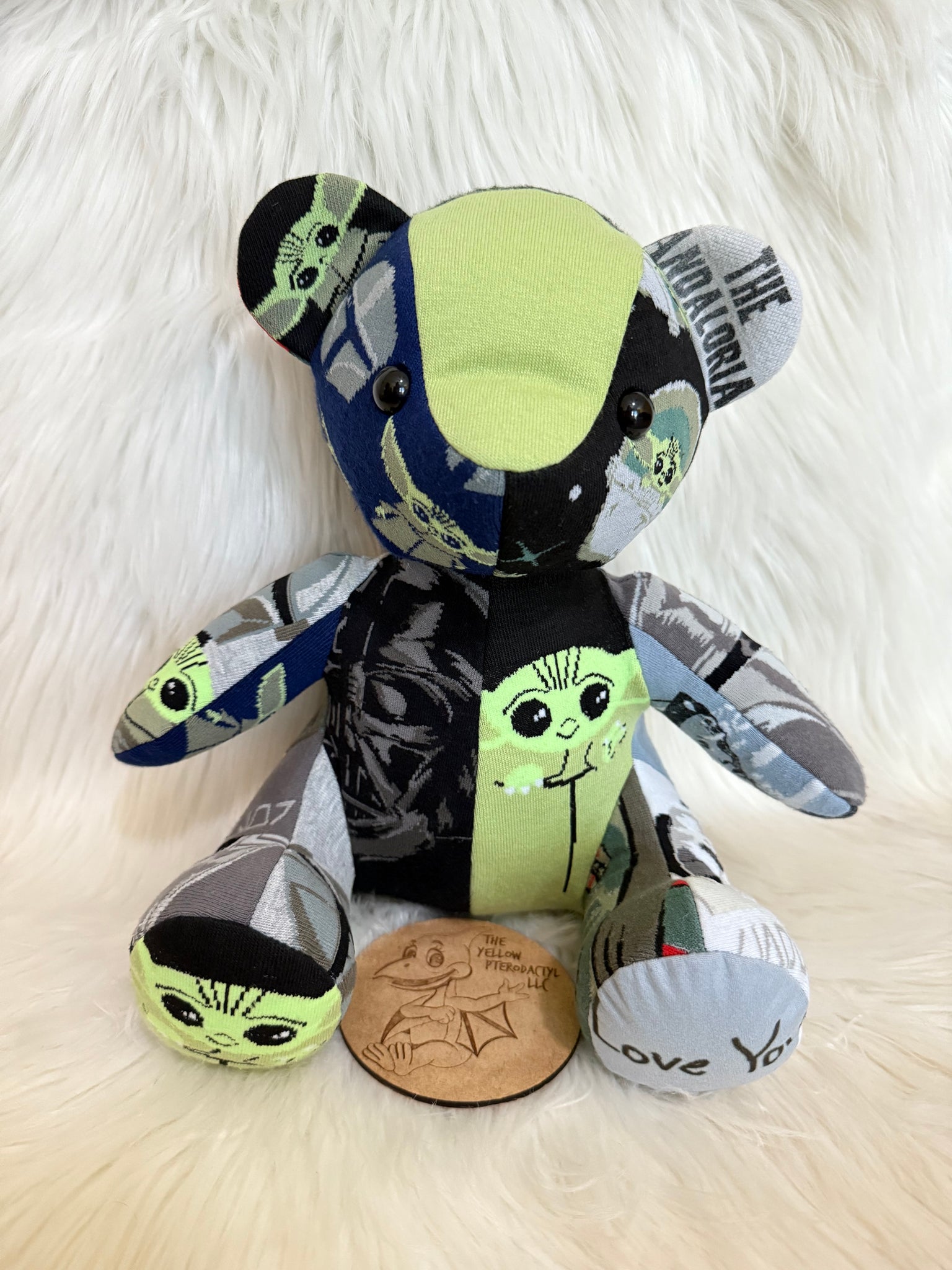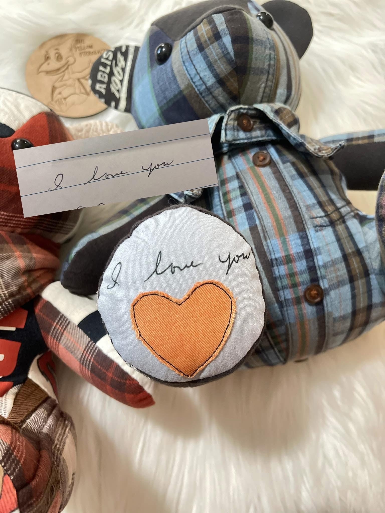 I can use almost any material to make your bear. (EX: Dress shirts, Polo, UNIFORM, Sweater, dress, wedding gown, PJ’S/Nightgown, Dry Fit, Receiving Blankets, ETC) **Please feel free to email if you’re unsure if I can use the item/s you’re wanting the bear made out of. Please note, I have sensory issues and one of the materials I can’t work with is wool.